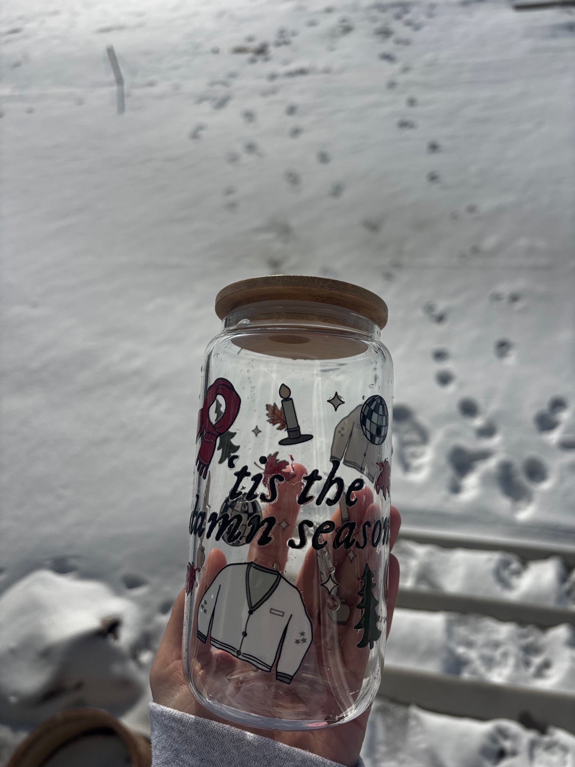 ✿ 20 oz glass cup with glass straw and bamboo lid